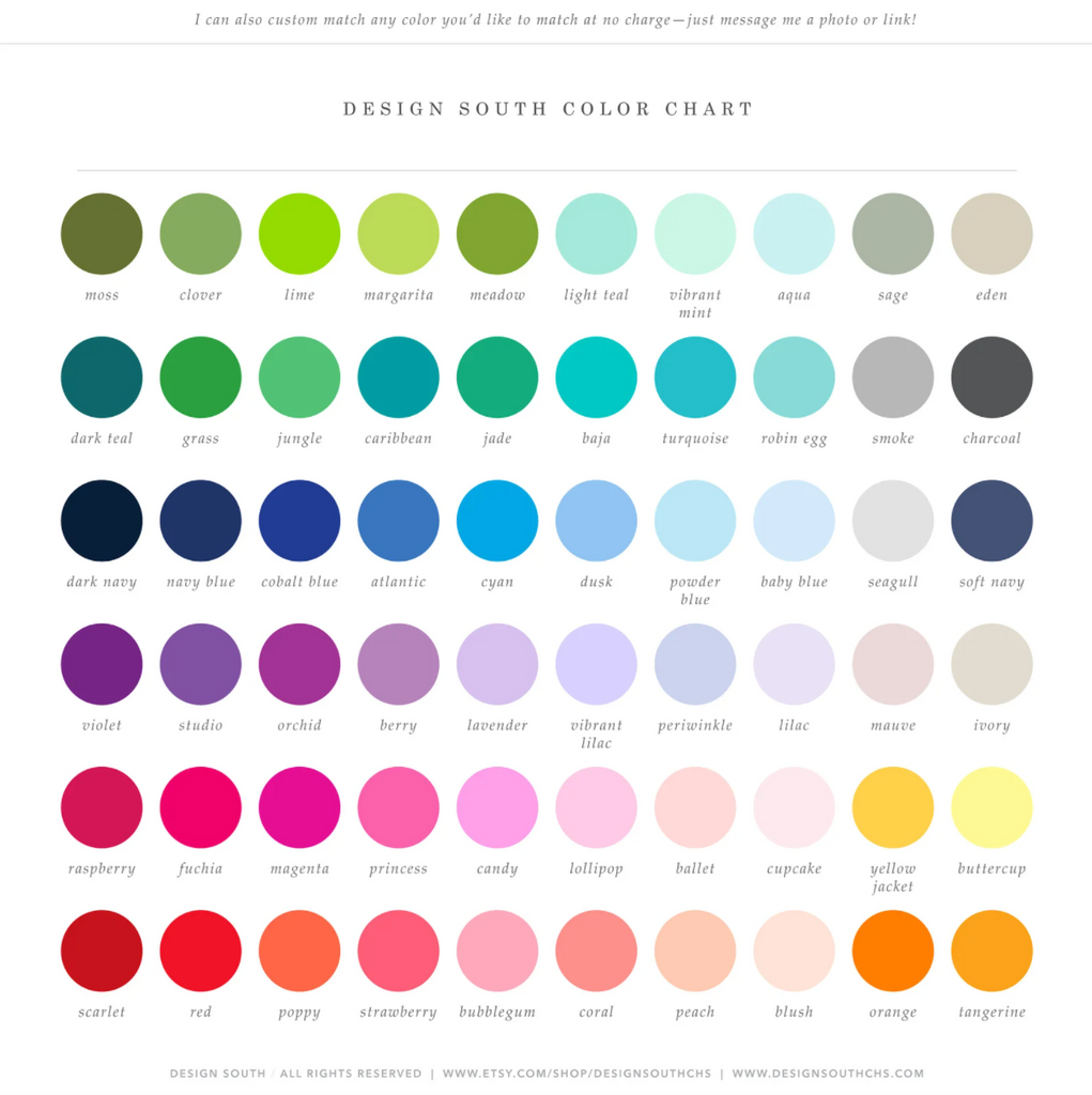 **NOTE: Please leave a message in the 'notes to seller' section during checkout with your color choice from the chart above if you are requesting colors that are different from this listing. If you do not see the color(s) you want, send me a message! I also accept pictures of nurseries, bedding, and decor for color matching.