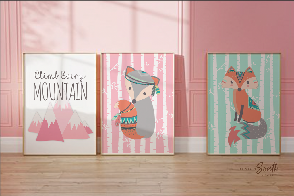 Thank you for choosing Design South. I take pride in creating custom designs for your home. These tribal fox wall prints are perfect for a girl nursery, playroom or bedroom.