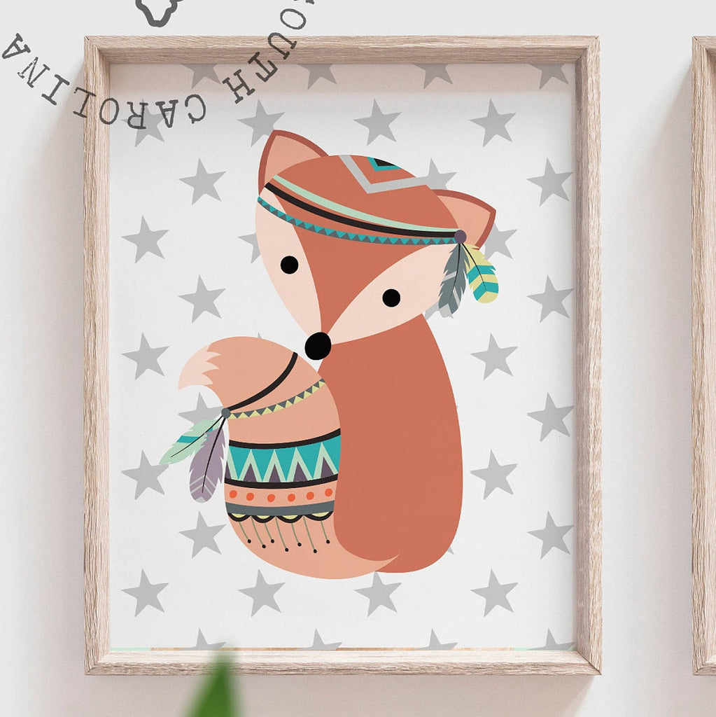 Nursery wall art ideas, fox nursery decor, tribal woodland wall art, be brave, fox decor, baby shower gift, gender neutral nursery art ideas