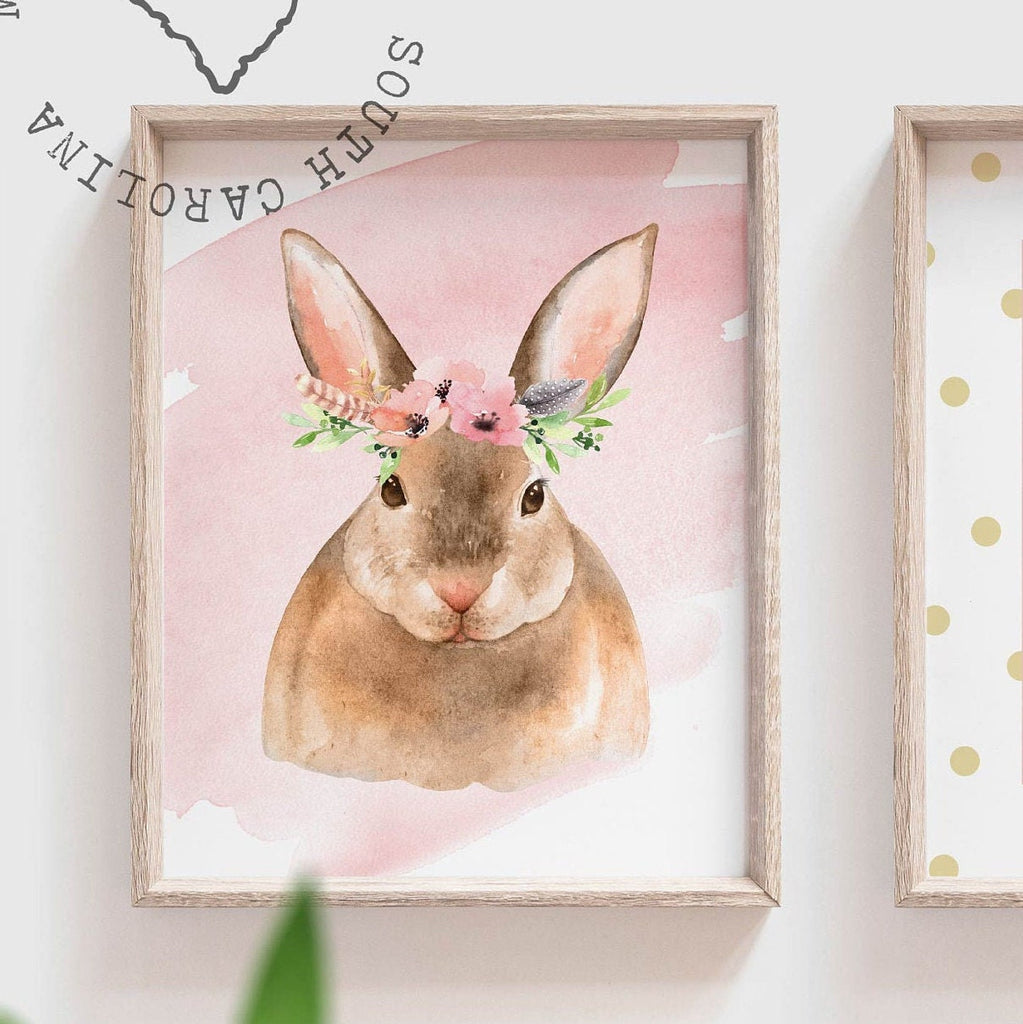 Pink and gold woodland nursery art, baby girl bunny nursery, pink nursery, baby art, baby woodland art, bunny nursery art, baby girl pink