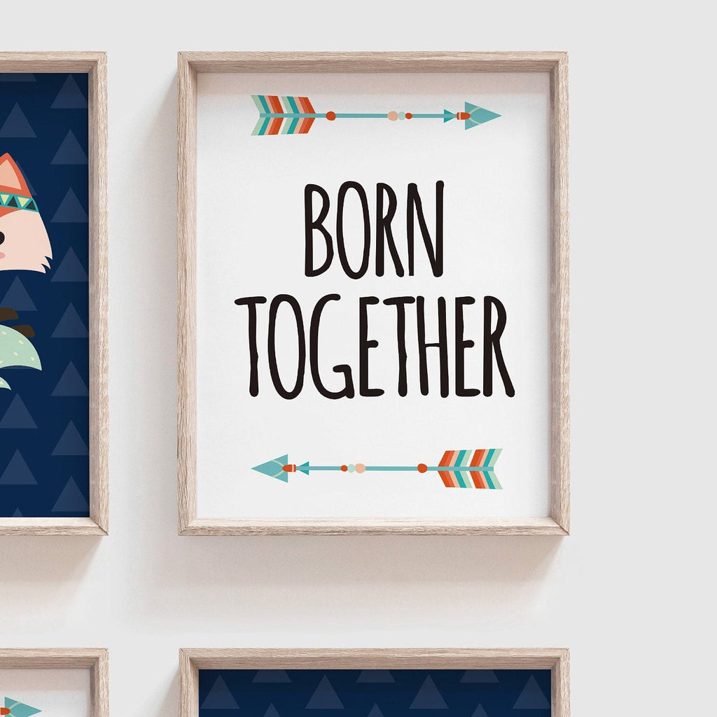 Twin nursery art, twin nursery decor, boy girl twins woodland, twin decor, twin art, nursery wall art for twins, twin foxes, born together