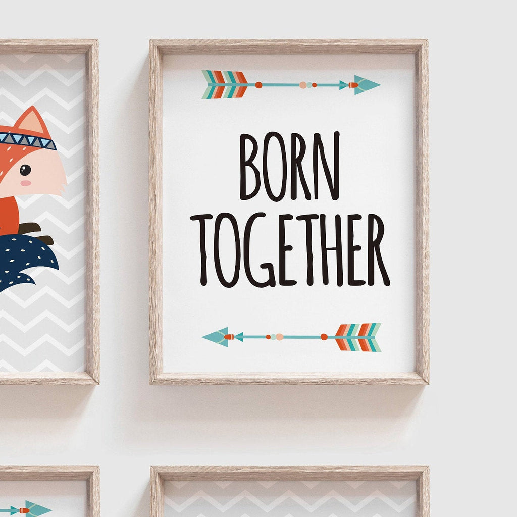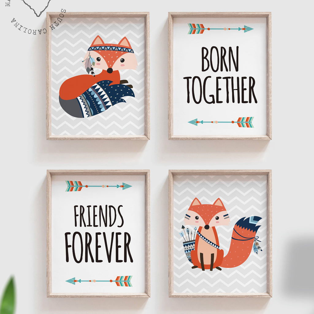 Twin nursery art, twin nursery decor, boy girl twins woodland, twin decor, twin art, nursery wall art for twins, twin foxes, born together