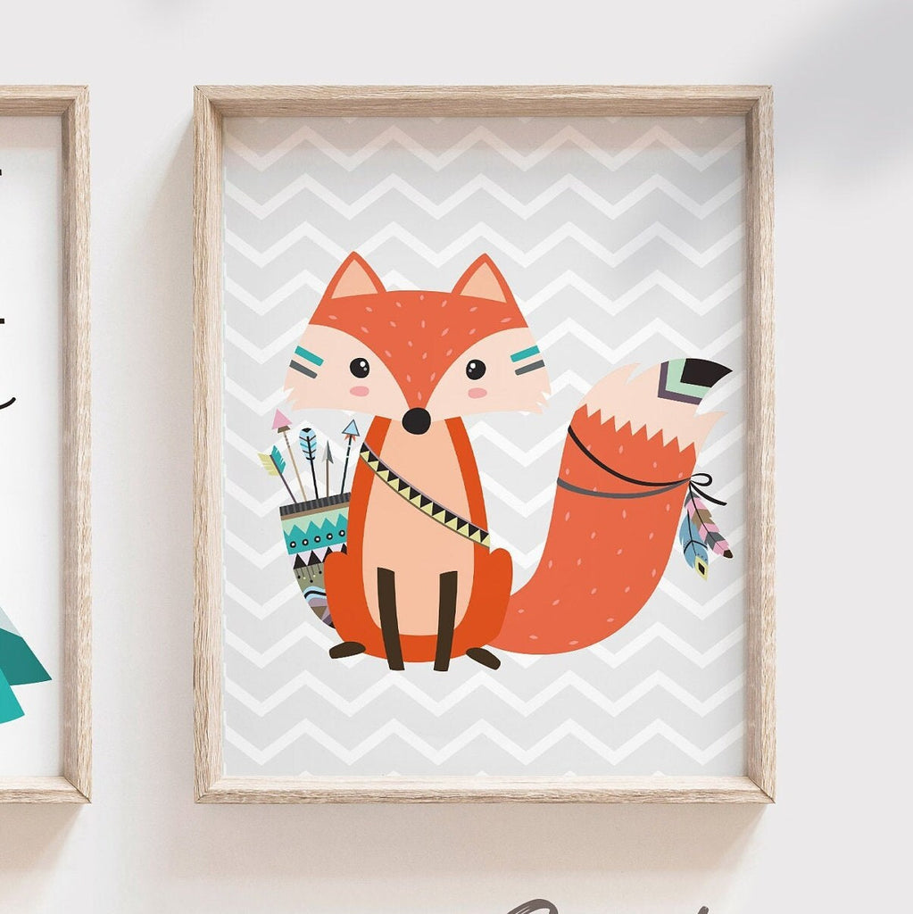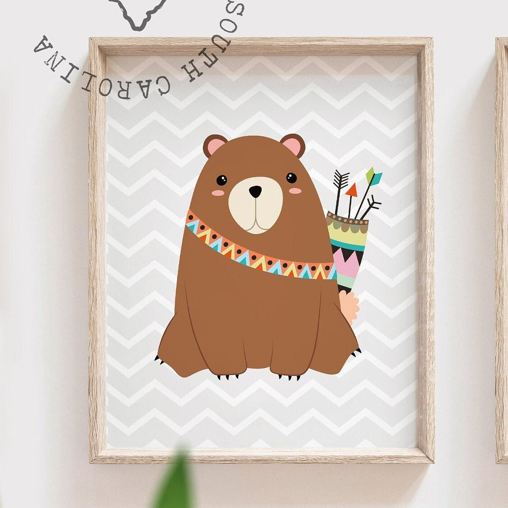Product description: Tribal bear and fox designs with matching quote reading "Be Brave Little Ones." Other color options available.