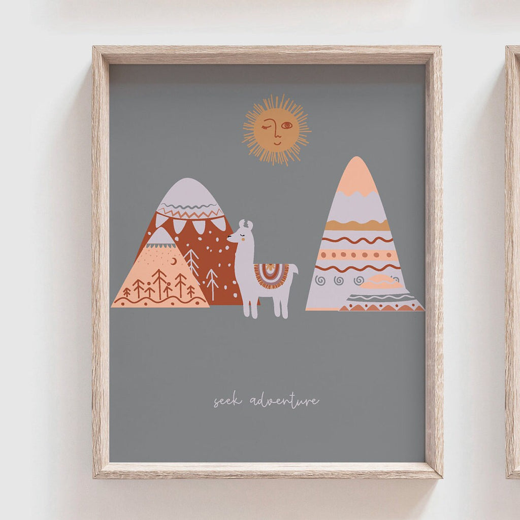 Unisex nursery, neutral kid decor, gray gender neutral nursery, children baby boho nursery art gray, neutral nursery decor boho desert llama