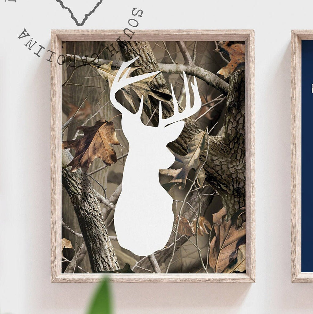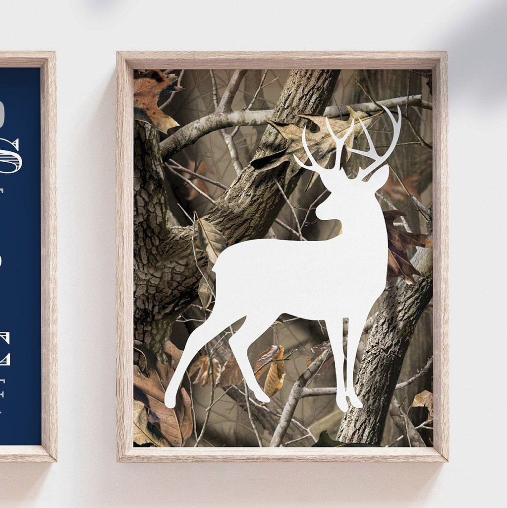 White-tailed deer, kids room art, realtree camo, nature nursery, big boy hunter art, deer woodland, hunting nursery, deer nursery set prints
