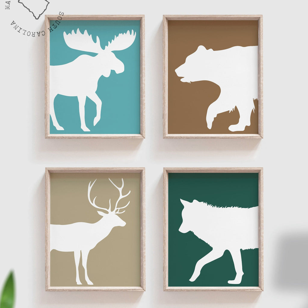 Woodland nursery art, woodland nursery prints for boys deer fox moose bear, woodland boys bedroom decor, boys playroom decor, playroom decor