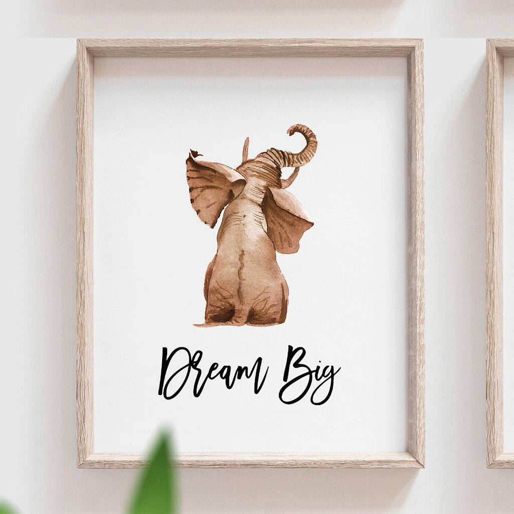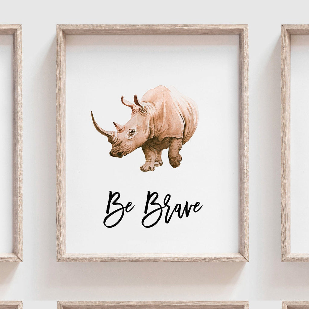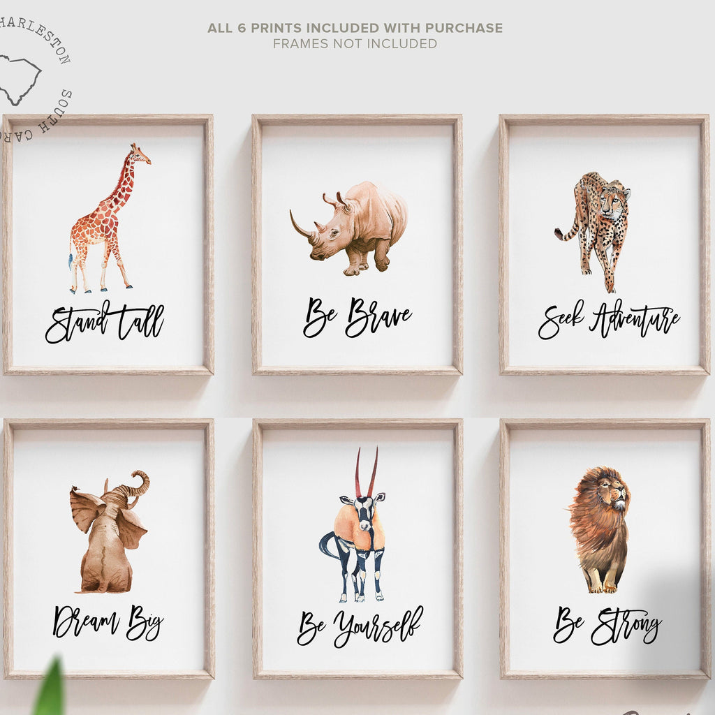 Animal nursery wall art, boys bedroom animals, set of animal art prints, baby animal art for nursery or bedroom, brave strong dream big boys