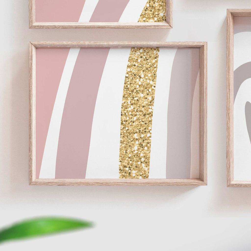 Baby girl pink gold, nursery wall art pink gold sparkles, rainbow baby room pink gold, gift for girl pink gold, glitter sparkles pink gold