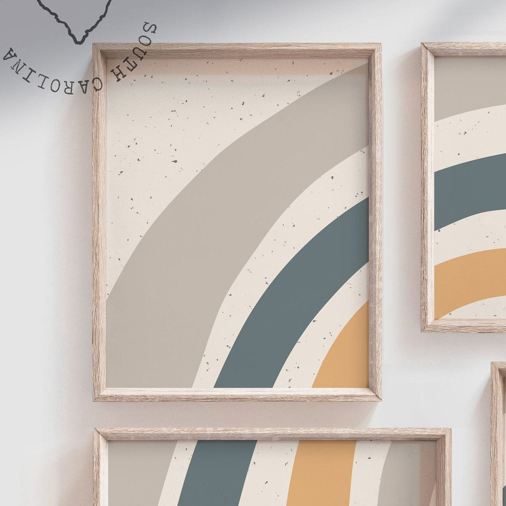 Product description: Rainbow design prints using a neutral color scheme. Messaging can be added the outer ray as seen in similar listings in my shop. Please place this information in the 'notes to seller' section during checkout, if desired. Other options are also available in my shop.