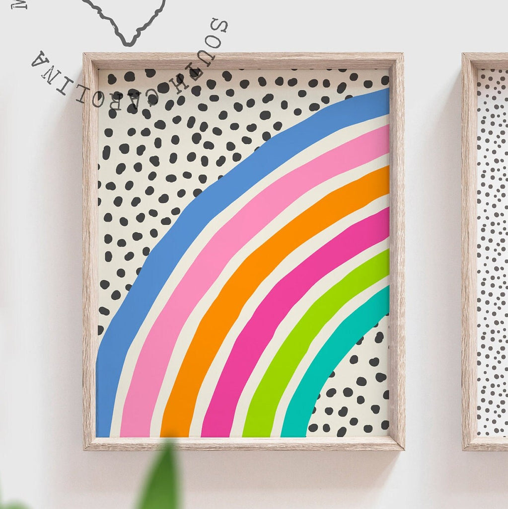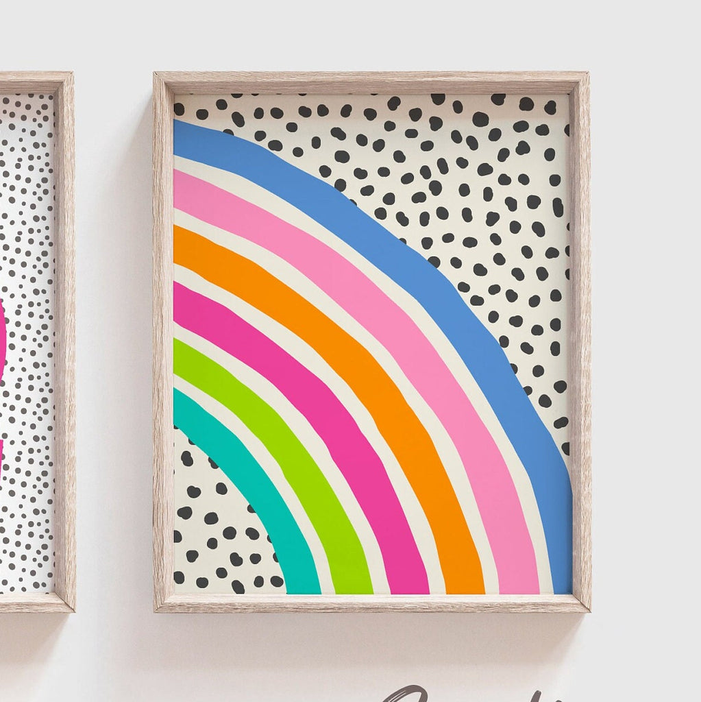I take pride in creating all of my designs. These contemporary rainbow theme wall art prints will redefine the walls of a girl's nursery, playroom or bedroom. Each design is curated with a passion and vision to create inspired spaces for you and your little ones.