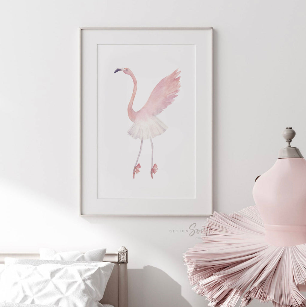 ☛ ☛ ☛ FRAMES ARE NOT INCLUDED ☚ ☚ ☚Thank you for choosing Design South. 🌸I take pride in creating all of my designs. These chic ballet themed wall prints will redefine the walls of a girl's nursery, playroom or bedroom. Each design is curated with a passion and vision to create inspired spaces for you and your little ones. ----------------♥ WHAT YOU WILL RECEIVE ♥-----------------➤ Three UNFRAMED art prints. Product description: Ballet themed watercolor prints featuring elegant dancing flamingos. Other options are also available in my shop.Frames are for decoration purposes and are not included. The prints should be framed behind glass once received. These are not canvas prints. My art is professionally printed on high-quality fine art paper. Each piece is printed as ordered. --------------------♥ HOW TO CHECKOUT ♥--------------------1. Choose the size of your prints. Options: 5x7, 8x10, 11x14.---------------------------♥ TIMELINE ♥-----------------------------Timeline: Orders are carefully packaged and typically ready to ship within 3-5 business days. See my shop website for updated turnaround times. If you would like a custom order, visit my shop website and send me a message. Note: Custom orders will require a proof sent to you via email and confirmation regarding the proof for your order to be mailed. **Each day that I do not receive information such as your child's name, or an approval of the proof, it will delay the shipping date. -----------------------♥ TERMS OF USE ♥-------------------------Product cannot be reproduced, resold or distributed. The artwork in this shop is the property of Design South. The artwork offered here is for personal use only.Thanks for choosing Design South! - Cassie DESIGN SOUTH© COPYRIGHT 2022 / Design South / Cassie Rinehart