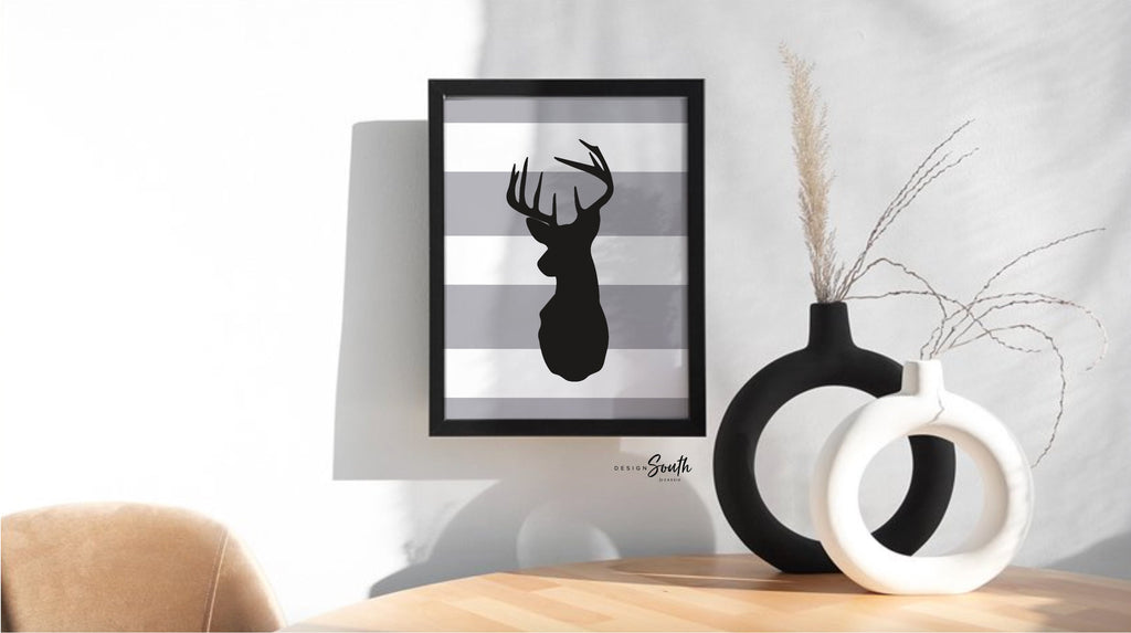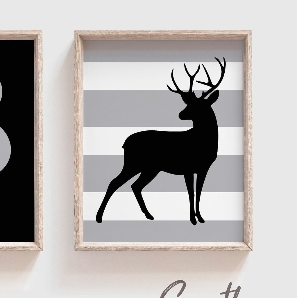 Nursery deer decor, deer prints, buck deer, black and gray deer art, deer art for playroom, deer for child's bathroom, personalized deer art