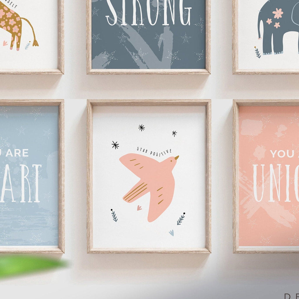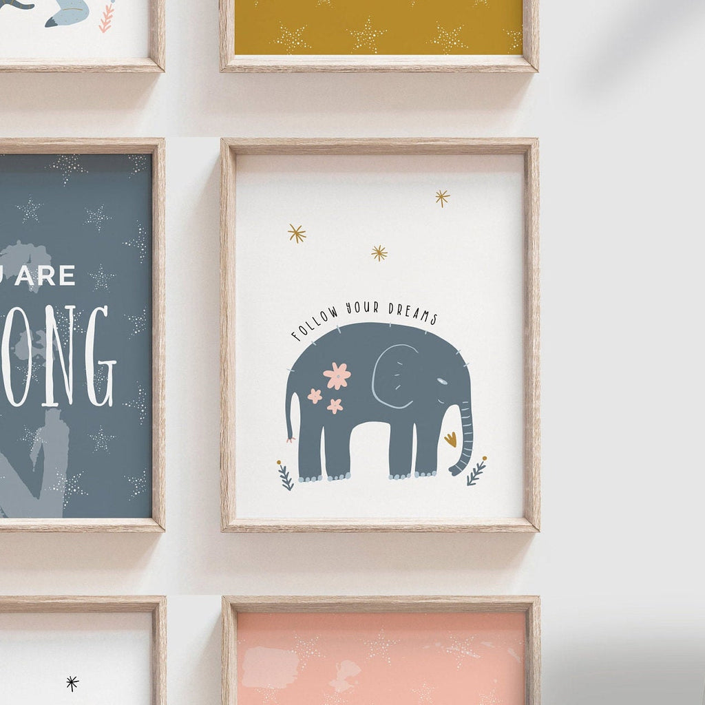 I take pride in creating all of my designs. These modern animal themed inspirational wall art prints will redefine the walls of a child's nursery, playroom or bedroom. Each design is curated with a passion and vision to create inspired spaces for you and your little ones.