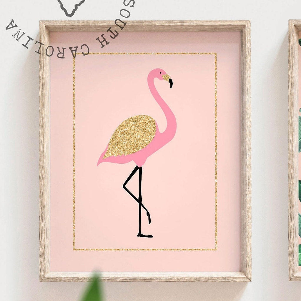 Product description: Tropical art set featuring a glittery flamingo and pineapple accented with palm leaves and an adorably cute print reading, "Welcome to my crib." Other options are also available in my shop.